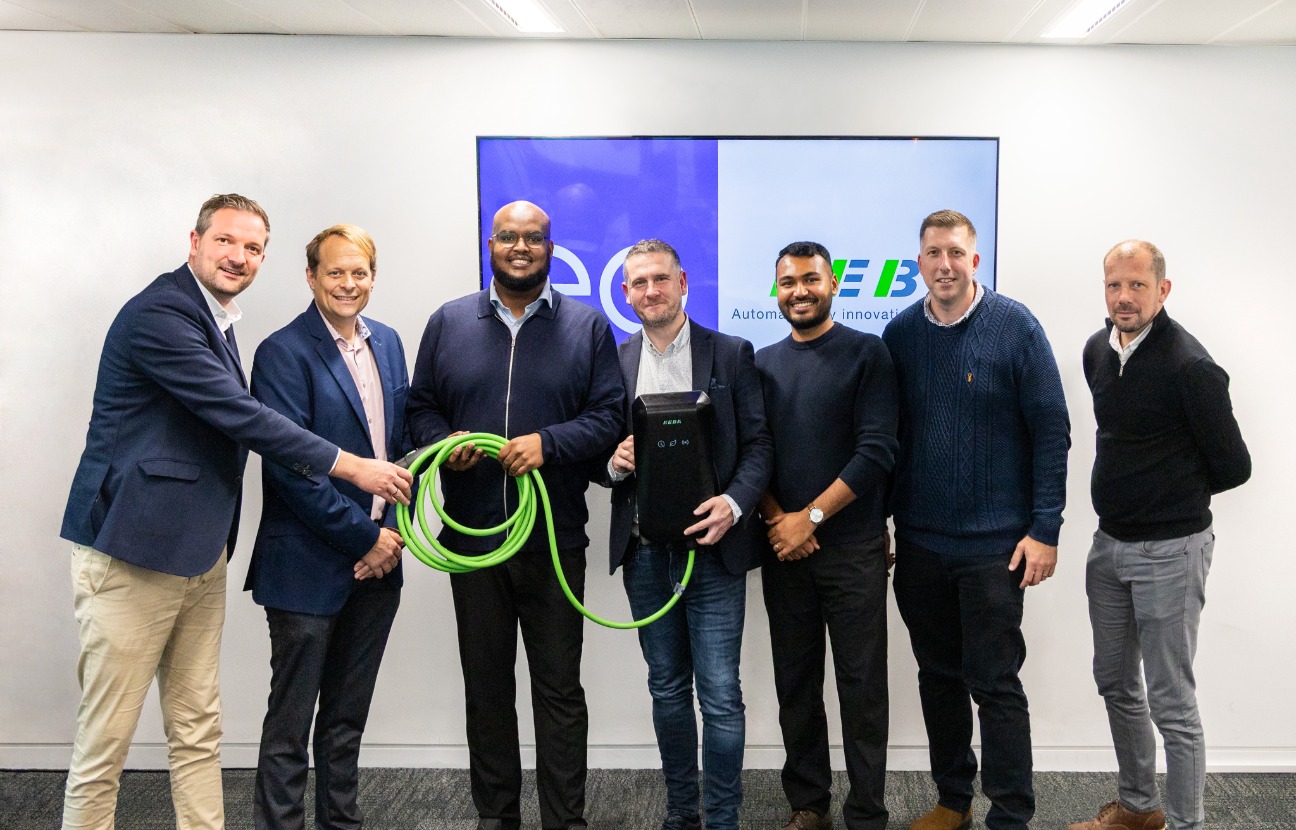 Mathias Knauer (Director Market eMobility, KEBA), Richard Earl (R&D Director, EO), Mohoumud Ismail (Fleet Sales Director, EO), Darren Gardner (Country Manager UK, KEBA), Sam Arabastani (Senior Product Manager – Integrations, EO), Darren Hitt (Customer Solutions Manager, KEBA), Adam Tinkham (Technical Solutions Manager, EO) - photo: KEBA.